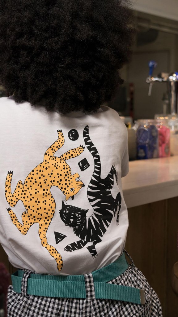 Daarnaast inspireert mode mij en daarom gebruik ik graag kleuren die op dat moment in de mode te zien zijn. Neem bijvoorbeeld vorige zomer: Toen was de panterprint mega populair en heb ik bij Funkie House een panter T-shirt uitgebracht. Dat was een échte bestseller. Het is grappig hoe dat samen kan komen.