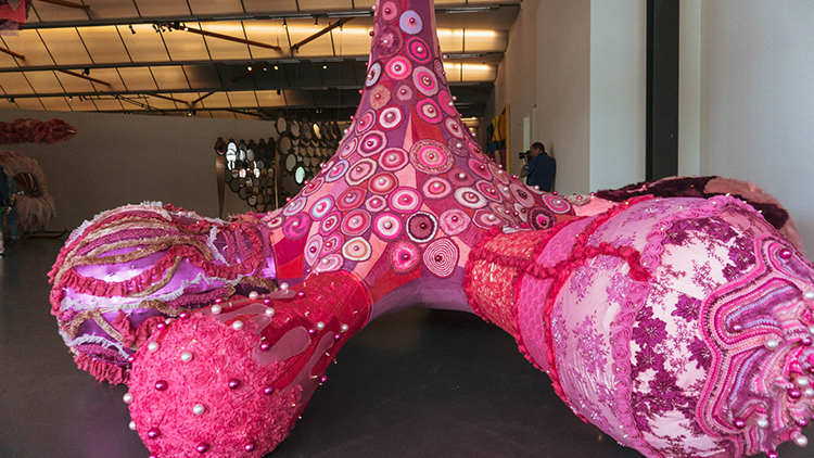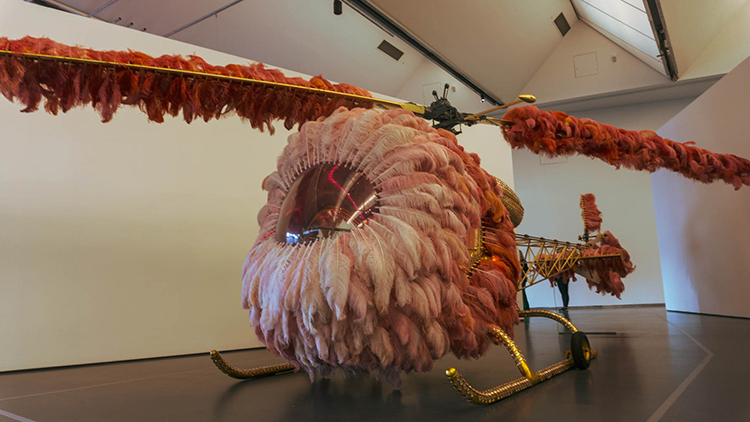 Onder andere Lilicoptère (2012) – een vergulde helikopter gedecoreerd met Swarovski kristallen en struisvogelveren die zij maakte voor haar solotentoonstelling in het Paleis van Versailles – is t/m 17 november te bekijken.