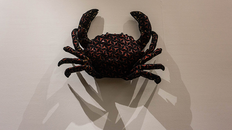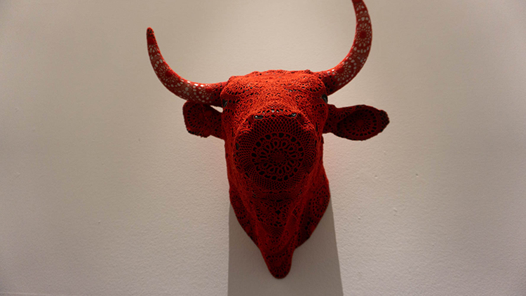 van de Portugese kunstenaar Rafael Bordalo Pinheiro, die zij bekleedt met gehaakt textiel.’