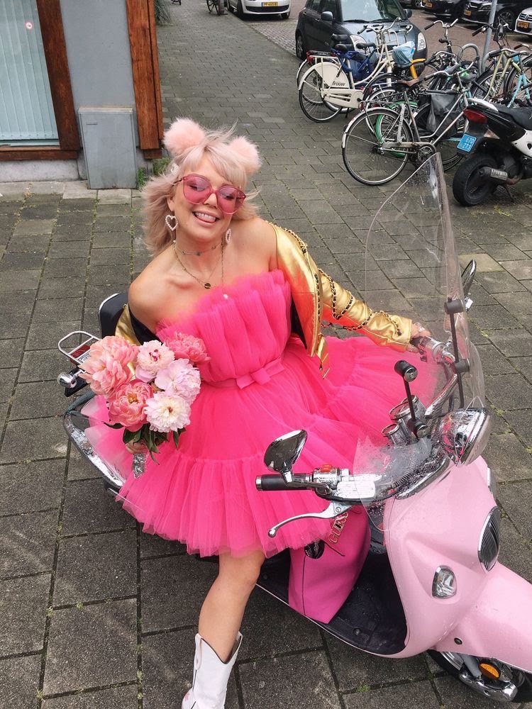 Mijn gedachten gaan gelijk naar mijn oma. Zij was coupeuse en ontwerpster. Ik ken haar niet anders dan dat ze achter de naaimachine zat. Haar atelier had honderden soorten stofjes, alle kleuren garen en de meest uitgebreide naaimachines. Ik vond het heerlijk als zij een outfit voor mij maakte. Samen stof uitzoeken, kleur bepalen en natuurlijk het ontwerp. Ik voelde mij echt een prinses als ik haar designs aan had. Van haar heb ik geleerd een eigen stijl te ontwikkelen, te focussen op je eigen talent en altijd door te zetten. Daarnaast was m’n liefde voor Barbie poppen ook intens groot. Daar is denk ik ook de verslaving voor roze ontstaan.
