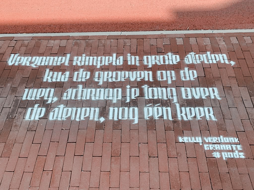 Uiteraard haal ik ook veel inspiratie uit andere poëzie, spoken word, literatuur, poëtische films en illustraties. Dat kan een gedachte zijn (hoe je over kunst kunt denken), een mooi beeld, maar ook technische foefjes. Als iemand veel met stilte werkt, denk ik bijvoorbeeld: hè tof gedaan, dat wil ik in mijn stijl integreren. Dan ga ik dat in mijn volgende gedichten ook proberen. Tot ik het begrijp en iets nieuws ontdek.