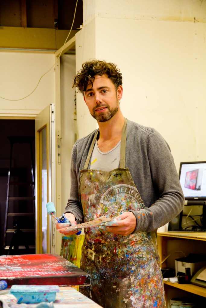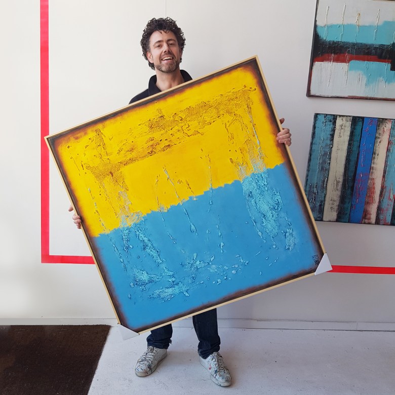 Ik was jarenlang grafisch ontwerper en had altijd de wens om een product te maken dat ik online kon verkopen. Ik heb gekeken naar meubels, accessoires, kleding, zelfs een ondergoed lijn. Achteraf gezien grappig, omdat ik al die tijd heb geschilderd, maar het is nooit bij me opgekomen dat ik daar een winstgevend bedrijf van kon maken. Na een tijdje begon ik de kans in te zien en hoewel sommigen zouden zeggen dat ik gek was, besloot ik mijn kunst te verkopen.