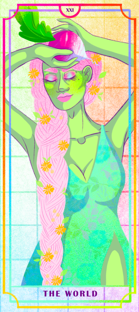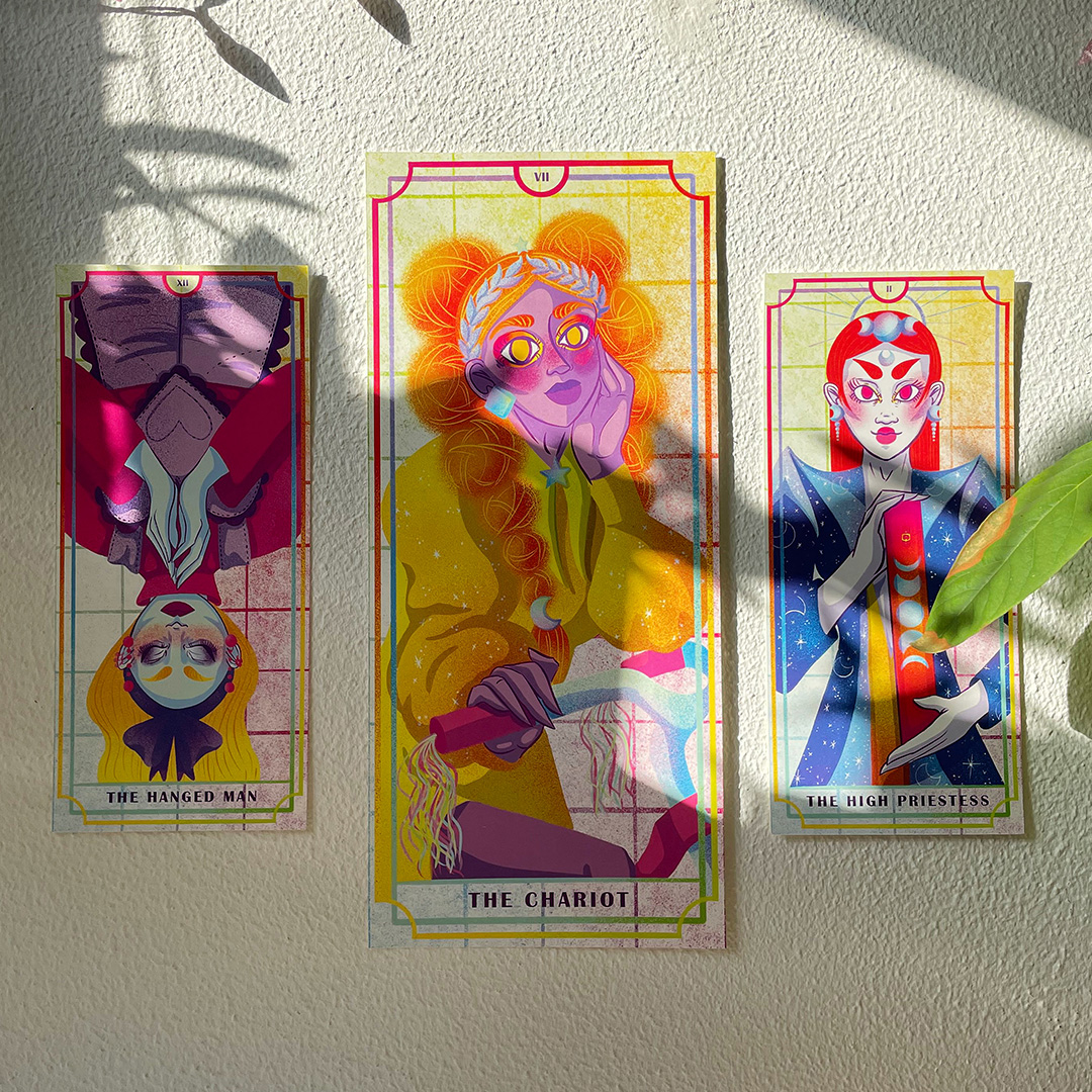 Jessica: “een droom van mij was om ooit eens mijn eigen tarot deck te illustreren. Tijdens de Corona lockdown had ik hier opeens de tijd voor en heb ik mezelf uitgedaagd om in ieder geval de 22 Major Arcana kaarten te illustreren. Daar is deze collectie posters uit ontstaan.”