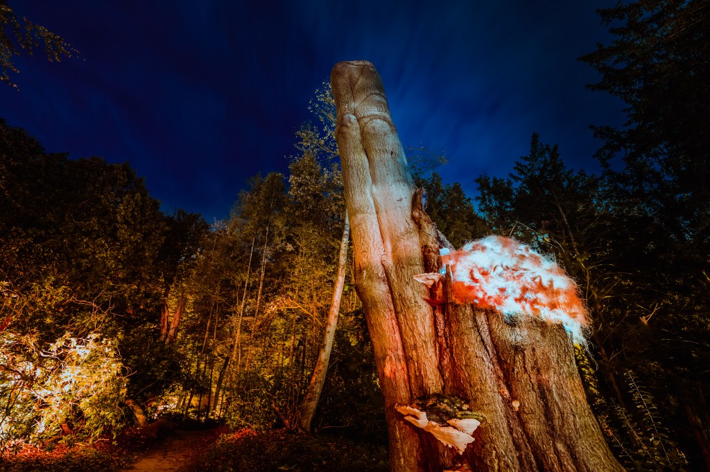 Dit jaar geniet je tijdens de herfstvakantie opnieuw van de natuur tijdens een bijzondere tocht in het donker. De Grote Schijn is een magische ontdekkingsreis door het bos. Fluisterende bomen, fascinerende lichtprojecties en betoverende klanken zorgen voor een uniek schouwspel.