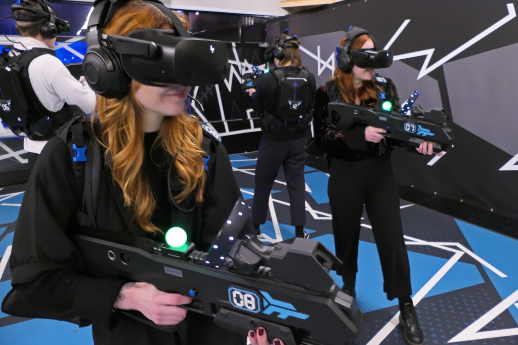 Je speelt een VR spel met 2 tot 8 deelnemers, het speelveld is zo groot als een tennisbaan en jouw game uitrusting is volledig draadloos. Ultieme bewegingsvrijheid dus, behalve wanneer je bijna tegen een medespeler aanbotst, maar voordat dat kan gebeuren krijg je een melding in het spel.