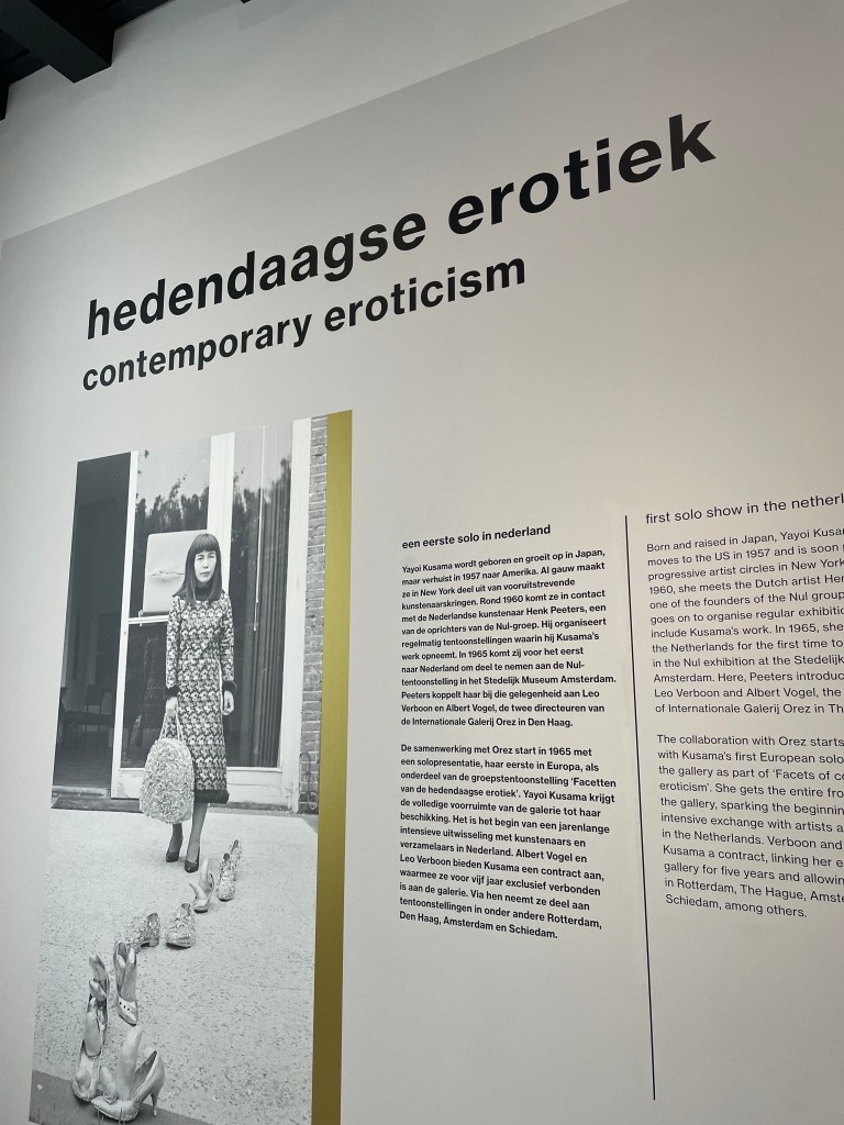 Het is zeer uitzonderlijk dat het onbekende en kwetsbare werk uit de vroege jaren van Kusama nu samen te zien is. ‘Yayoi Kusama. De Nederlandse jaren 1965-1970’ schetst een verrassend nieuw beeld van een zelfbewuste jonge Kusama, die in het Nederland van provo, happenings en jeugdcultuur de basis legt voor haar wereldveroverende artistieke oeuvre. De tentoonstelling is te zien van 23 september 2023 tot en met 25 februari 2024.