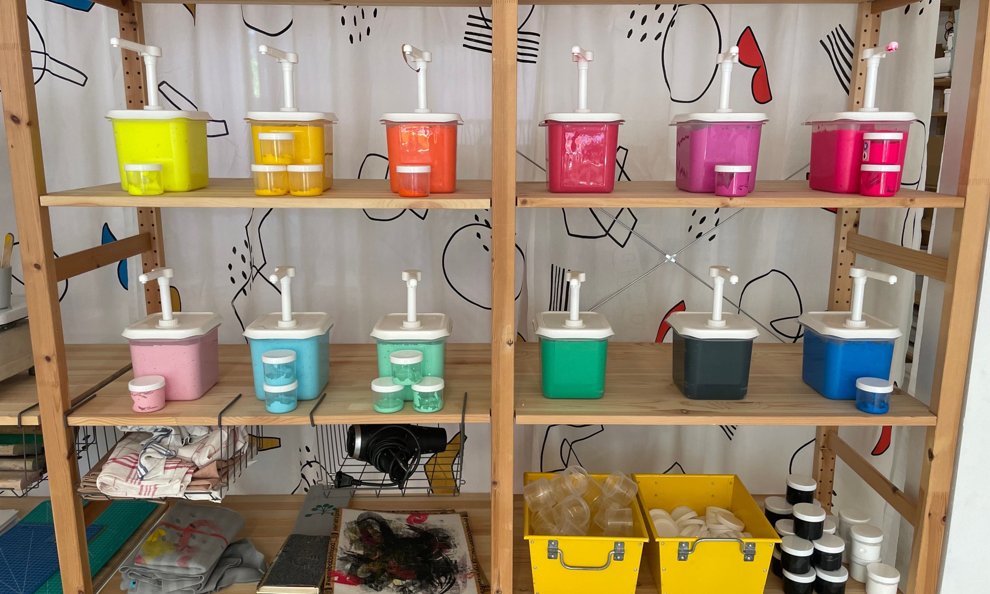 “Mijn accomplices gaven eindeloos veel workshops in Nederland en België. ondertussen woonde ik even in Canada met mijn gezin en daar zagen we een keramiek café. Zo tof! Toen ontstond de droom voor een zeefdruk café.