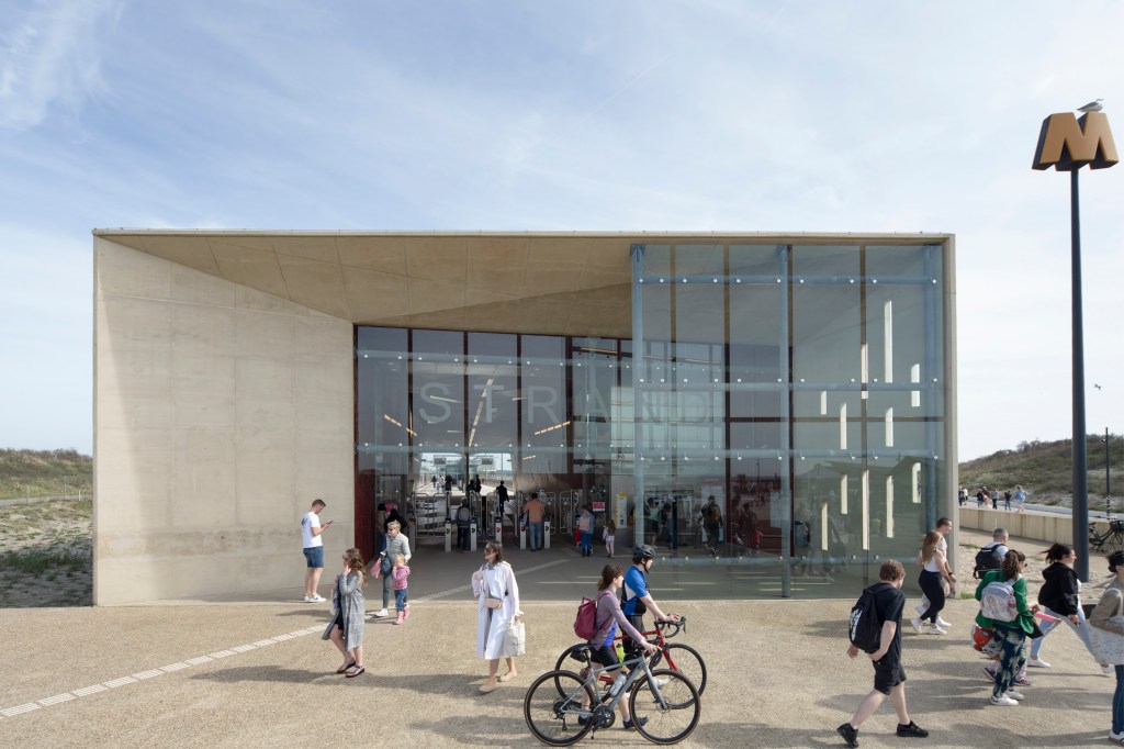 Voor Metrostation Strand is een veelvoud van technische uitdagingen met betrekking tot zand en wind opgelost in een iconisch ontwerp dat de kwetsbare ecologie ontziet en toch ruimte biedt voor grote bezoekersstromen. Het resultaat is een in-en-in publiek bouwwerk.