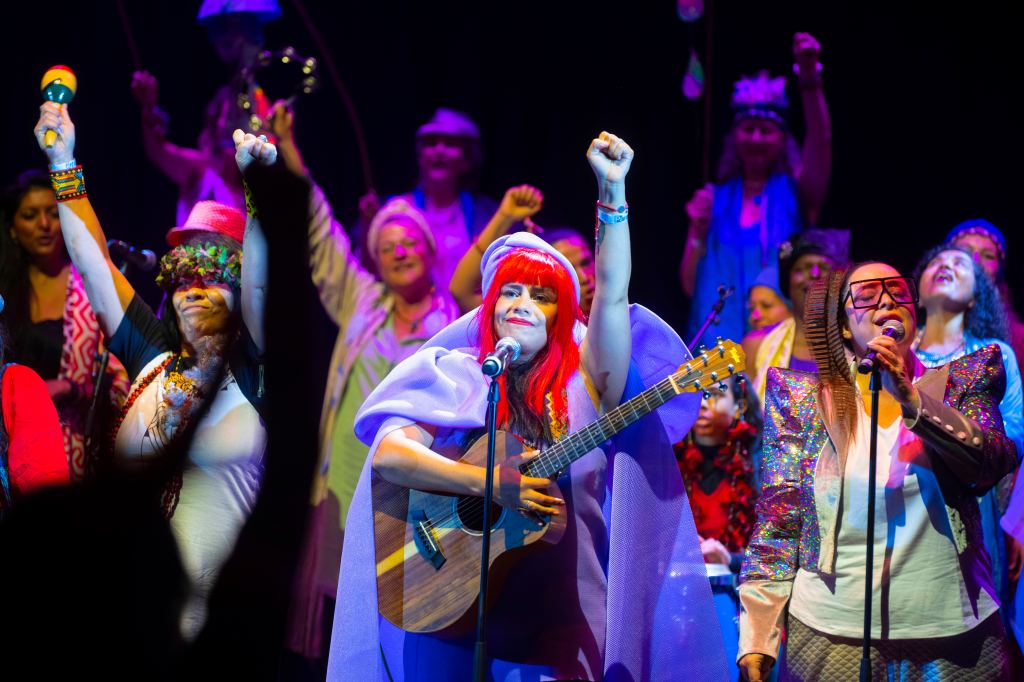 Een SHE-performance is een avond vol happenings, rituelen en muziek: er wordt geofferd, gezongen en gedanst om het vuur. SHE doet aan joyful action: door middel van muziek en kunst wordt er gestreden voor een betere wereld en respect voor de natuur. Dit jaar is er bijvoorbeeld speciale aandacht voor het verhaal van Shirley Krenak, inheems leider uit de Braziliaanse provincie Minas Gerais, die vol onmacht moet toezien hoe het Atlantisch Woud (één van de meest biodiverse plekken op aarde) wordt aangetast door stropers en ontbossing. Ook andere heftige feiten – over kolonisatie, femicide en vergiftiging van de aarde – worden door SHE niet geschuwd.