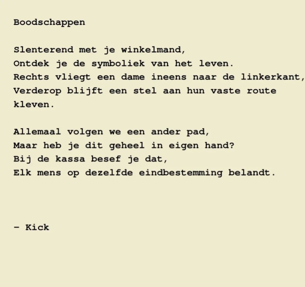 Houd ook de Instagram pagina van Kick in de gaten voor het laatste nieuws over zijn schrijfprojecten.