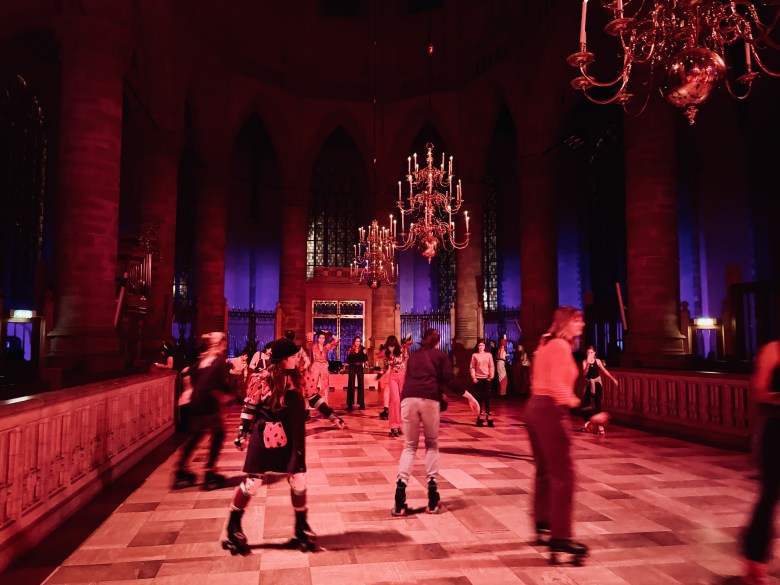 Woensdag 30 en donderdag 31 oktober en vrijdag 1 november 2024 waren speciale dagen in de Laurenskerk in Rotterdam. Tijdens de herfstvakantie konden alle mensen met een ticket – want dit event was uitverkocht! – komen rolschaatsen op de leukste hits. Het decor was feestelijk, de kerk was verlicht in alle kleuren van de regenboog, maar de kerk zelf en het indrukwekkende interieur stalen natuurlijk de show!