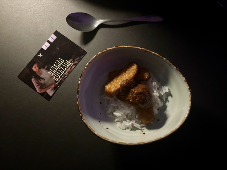 Onze redacteur Kim Longwood is een aantal jaar geleden al eens te gast geweest bij Cinema Culinair, namelijk tijdens de vertoning van Lost in Translation in het nhow Rotterdam. Het was dus geen verrassing dat het bezoek in november 2024 succesvol zou zijn, want Kim was allang fan. Maar er mag toch een applaus gegeven worden voor hoe sfeervol en leuk de ruimte eruit zag, hoe lekker het eten en drinken was en hoe behulpzaam het personeel was.