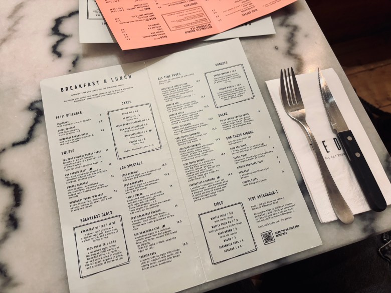 Het menu bestaat uit een variatie aan gerechten, van koud en warm tot zoet en hartig. Denk aan Griekse yoghurt met fruit compote, vegan French toast, smores pancakes, sandwiches met kip, steak of geitenkaas én natuurlijk de fameuze gerechten met ei. Eggs Benedict of Eggs Norwegian, triple omega, red shakshuk-alike en Turkish eggs.