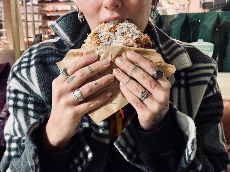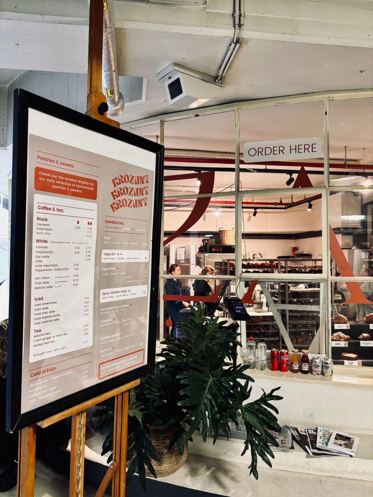 Als je aan het loket staat zie je een bord met het menu. Hier staan sandwiches op die niet alleen op brood maar ook op een croissant te bestellen zijn. Wij raden de Egg Salad aan (met truffel, hallo!), natuurlijk op een croissant. Je weet niet wat je eet… jeetje wat lekker. Maar er zijn nog meer opties, zowel met vlees als vegetarisch.