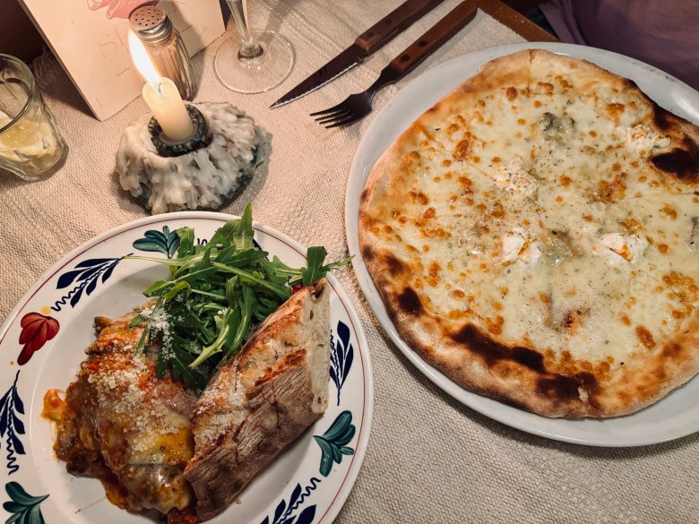 Speck is niet zomaar een pizzeria, het is een Italiaans restaurant met overheerlijke pizza’s, maar ook meer dan genoeg andere gerechten zoals artisjokharten, risottoballetjes, melanzane en één van de lekkerste insalata verde (de olijfolie… oef) die je in Rotterdam gaat proeven. Wij kozen voor een aantal van bovengenoemde gerechten, inclusief een pizza bianca (vegetarisch). We hebben zitten smullen tot de laatste hap.