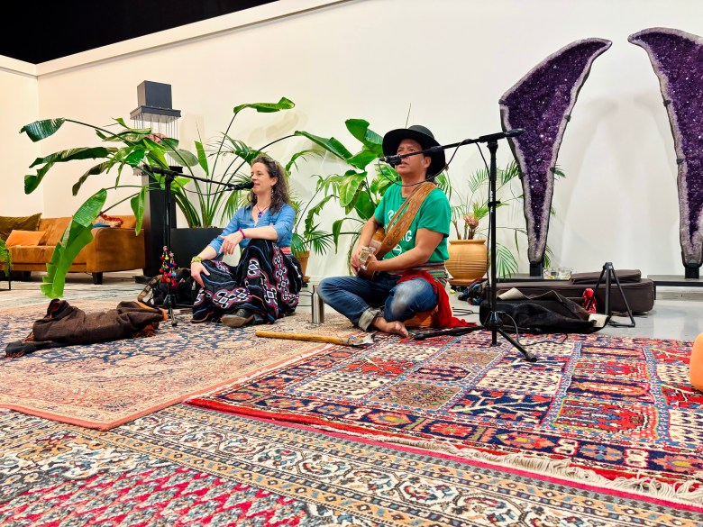 We waren te gast bij de muzikale reis ondersteund door ceremoniële cacao, gehouden door Sharon en Henry, ook wel bekend in de cacao ceremonie wereld als Shaz & the Medicine Man. Twee lieve, warme mensen, die door middel van verhalen en muziek mensen de kans geven om zich in een veilige omgeving open te stellen, om te voelen en kwetsbare verhalen te delen. In een groep van meer dan 30 deelnemers voelde het intiem en persoonlijk, dat was heel bijzonder.