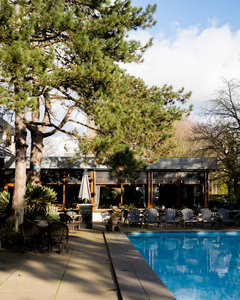 Een verblijf hier is niet compleet zonder een bezoek aan de brasserie. En eerlijk: dit is geen “hotelrestaurant” zoals je die misschien kent. Brasserie Lodgers voelt als het hart van het hotel. Binnen vind je knusse hoekjes, zachte verlichting en een open haard die direct sfeer brengt. Buiten is er een zonnig terras aan het zwembad, waar je op warme dagen heerlijk zit. Van ontbijt tot diner: je kunt hier de hele dag terecht. Denk aan een uitgebreid ontbijtbuffet, lunchgerechten, borrelplanken en verrassend goede diners met verse en seizoensgebonden ingrediënten. Wat ons vooral bijbleef, is de ontspannen sfeer. Je blijft hier gemakkelijk langer zitten dan gepland – nog een drankje, nog een gerecht, nog even genieten.