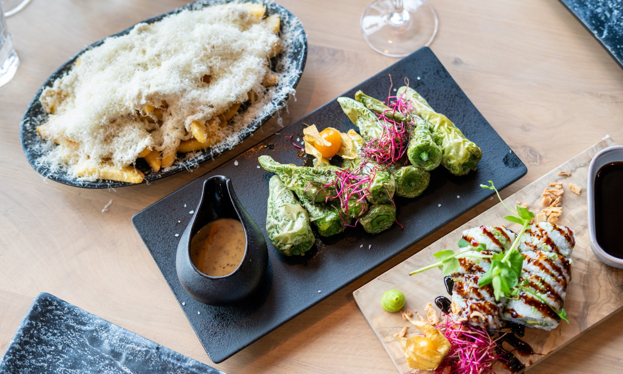 Bij Kyzo draait het om samen genieten. Het concept van shared dining nodigt uit om meerdere gerechten te bestellen en deze met elkaar te delen. Dit zorgt niet alleen voor variatie op tafel, maar ook voor een ontspannen, sociale sfeer waarin gesprekken vanzelf ontstaan.