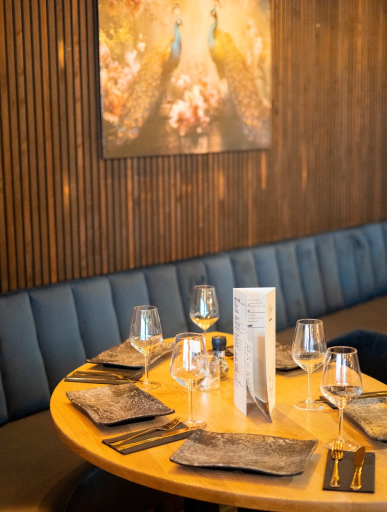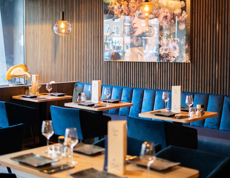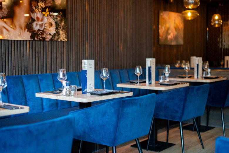 Het interieur van Kyzo sluit perfect aan bij het concept: stijlvol, maar niet afstandelijk. De inrichting straalt warmte uit en nodigt uit om langer te blijven zitten. Of je nu komt voor een lunch, een uitgebreid diner of een avond met vrienden — de setting voelt altijd passend. De combinatie van sfeervolle verlichting, moderne details en een open, toegankelijke indeling maakt dat je je hier snel op je gemak voelt.