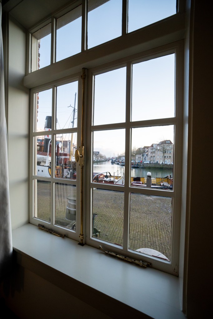 Eén van de absolute hoogtepunten van het verblijf is het uitzicht. Vanuit de woonkamer kijken we direct uit over de historische haven van Maassluis. Schepen glijden langzaam voorbij, het water reflecteert het licht en de omgeving ademt maritieme historie. Het voelt alsof je onderdeel bent van het decor – niet als bezoeker, maar als tijdelijke bewoner van deze bijzondere plek.